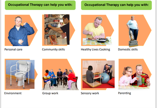 In cases where the learning disability impacts the person benefiting from post discharge rehabilitation OT recommendations- this will be done collaboratively with the acute/community health services